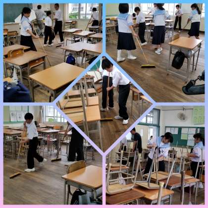 (放課後、1年生教室では班当番が『場を清め』黙々と清掃行っていました)