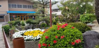本校の門入ったところにはたくさんのお花が植えられています。ボランティアの方々がお手入れされきれいに保たれています。