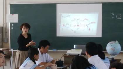 地球儀使って地軸のズレによる季節への影響をイメージできるよう工夫しています。