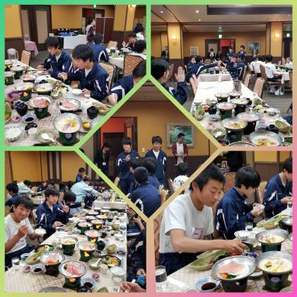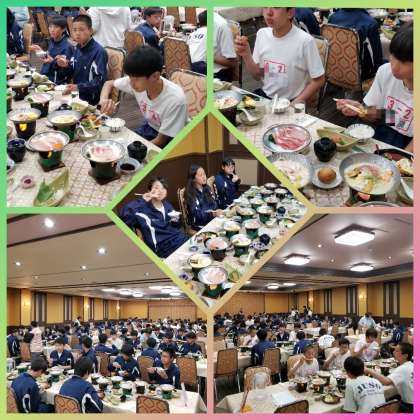 今日は午前中、民泊村での農家体験から始まり、移動の関係で早めの昼食となりました。そして、ラフティングでエネルギーをたっぷり消耗し、やっと夕食にたどり着いたと、いったところでしょうか。