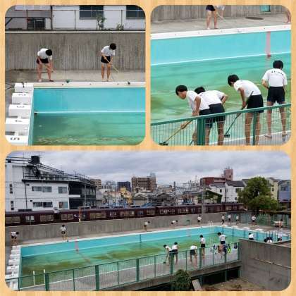 十三中保護者の皆様、子どもさんの水着準備をお願いします。