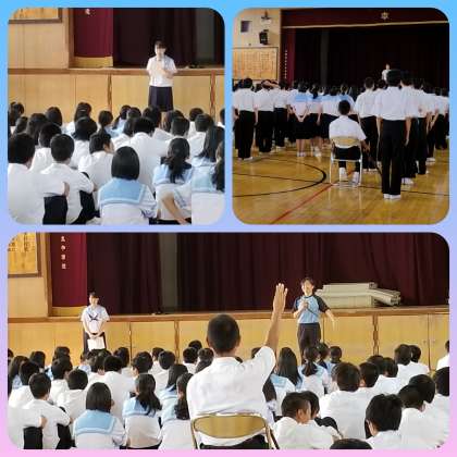 生徒代表からは、プール授業も始まり、これから本格的な暑さになっていきますが、期末試験も来週から始まるので、しっかり学習に向き合っていきましょうと決意の言葉がありました。