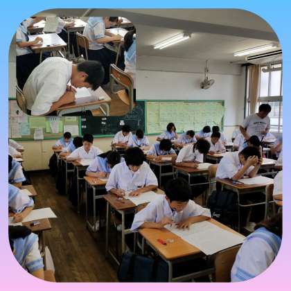 テストでは、一学期に学んできた生徒一人ひとり理解度、学習到達状況を把握します。