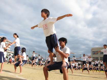 3年生による組み立て体操の様子です。