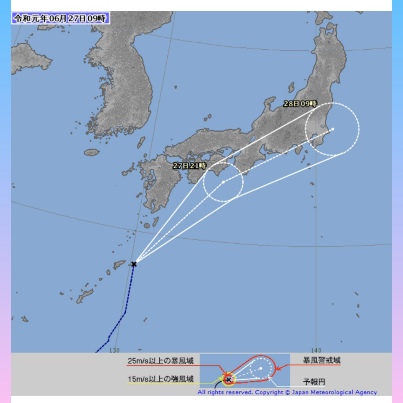 気象庁の情報。現在、梅雨前線が西日本に延び、南からの暖かく湿った空気が流れ込み、活動が活発になっています。今後梅雨前線がさらに北上し、熱帯低気圧が次第に台風へと発達しながら西日本の太平洋側へと接近、上陸するおそれがあると予想しています。