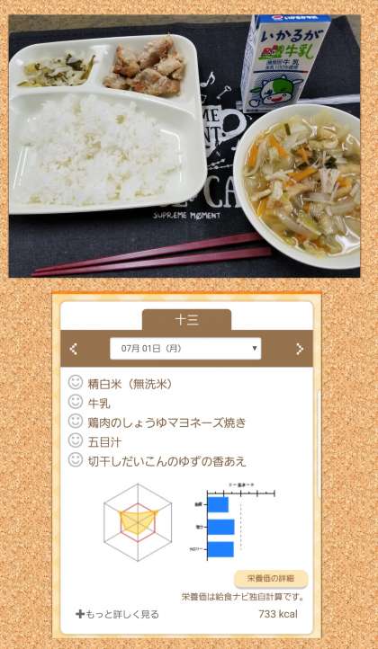改めて給食はいいですね。生徒にとっては健やかな成長に必要な栄養が盛り込まれ、我々大人にとっては、偏りのない野菜が多く含まれる健康的な食生活がここにあります。
