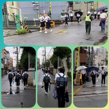 登校  踏切