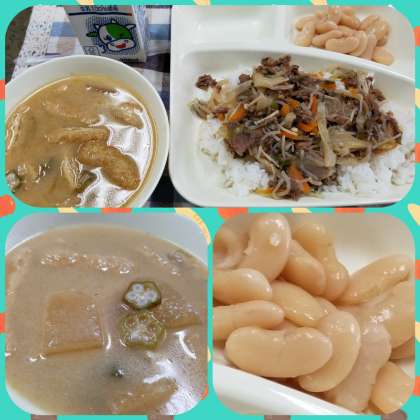 他には季節の野菜として、『とうがんの味噌汁』が付いていました。その中の具材はもちろん『冬瓜』。他にも『オクラ』が入っています。味噌汁にすることによって、食べやすくなったのではないでしょうか。栄養満点です。