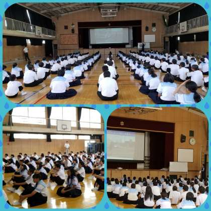 淀川警察署の交通課の警察官から、映像を交えて日常生活に潜む危険な行動等について講話がありました。