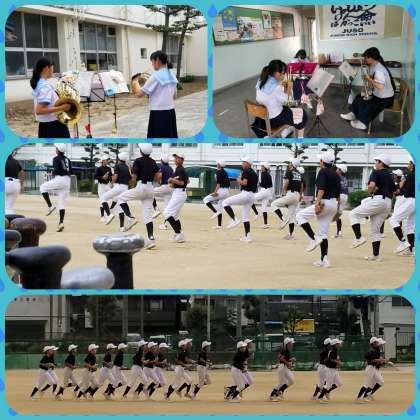 中庭や階段踊り場では吹奏楽部がパートごとに練習を行っていました。リーダーの指導に緊張感のある返事が返っていました。