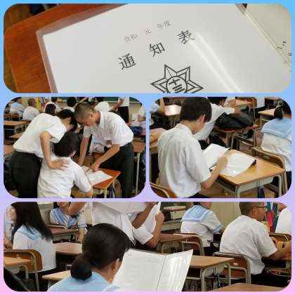 手にした生徒は、こっそり見る生徒、友人と見せあったり、大きな声で成績を発する生徒など表情は様々です。