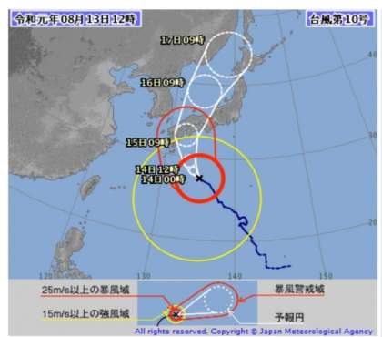 気象情報によりますと、台風10号が今後西日本近畿地方に接近することが予想されています。