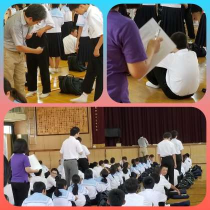 約15人の生徒に不備等があり、始業式までにきちんと整えるよう指導がありました。