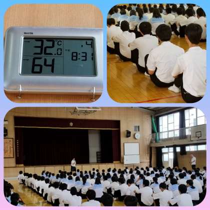 学年副主任からは、三年生が今日この体育館にこうして集まっていることを嬉しく思う、と安堵していました。また新学期に向けて、生活のリズムを整え、進路もありますが、学校生活最後の大きな学校行事を夏休み等で培ってきた体力と精神力でしっかりやりきってもらいたい、と講話がありました。