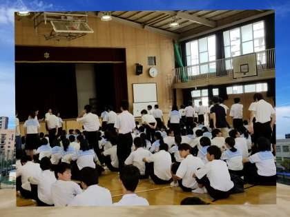 暑いなかであっても、きちんと整列し話を聞きます。