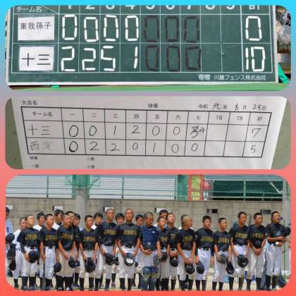 西淀中学校はチームとして素晴らしく終始圧倒されるばかりでしたが、粘りに粘り、最終回に逆転することができました。