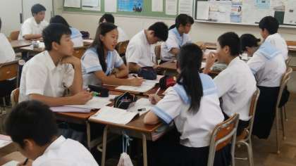 グループで和訳に取り組んでいます。