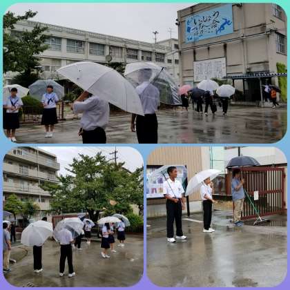 雨は降っているものの、一昨日までが異常な高温だっただけに、本日はたいへん涼しい朝の登校です。