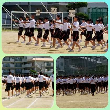 青空が見えてきました。日差しもあり気温も上がってきましたが、35度で活動し鍛えてきた生徒集団です。その表情には余裕があり、穏やかで、勇ましく行進練習に取り組んでいました。