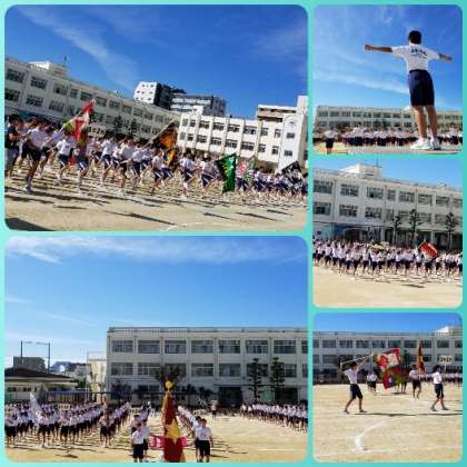 予行では、行進から始まり、セレモニーや行動等を確認します。