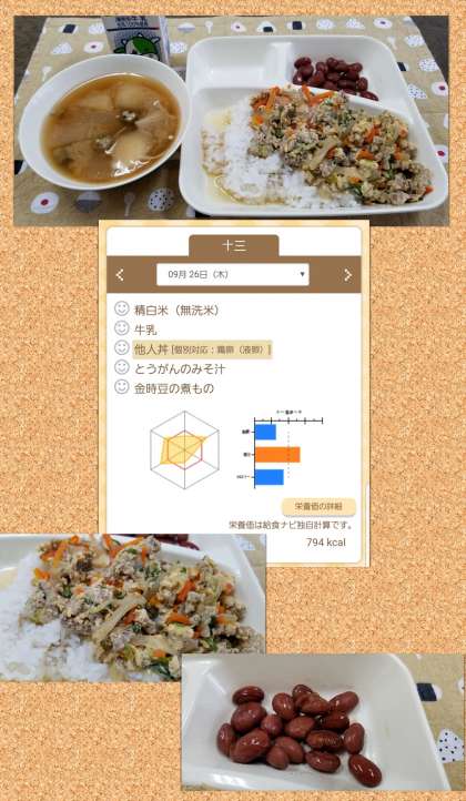 明日、体育大会の昼は給食がありません。各ご家庭からお弁当をご用意ください。また、10月1日(火)についても、体育大会予備日のため、給食は実施されません。お弁当になります。
