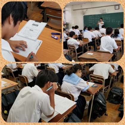 静まり返った教室で、配付された問題用紙を前に集中します。