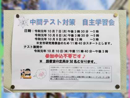 中間テスト対策『元気アップ自主学習会』が開催されます。
