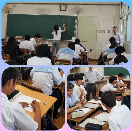 教育委員会教育センター指導主事と教育指導員が来校され、教室内で生徒目線で授業を見てくださいました。