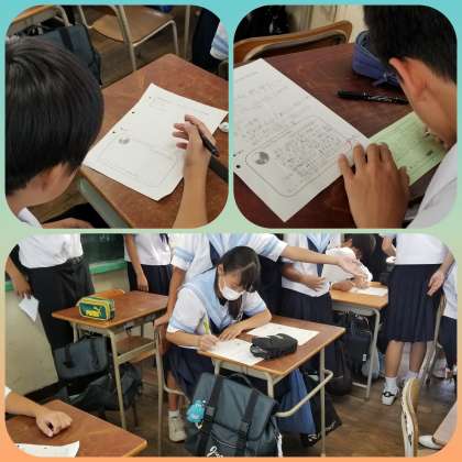 “The earth かけがえのない地球”というテーマで自由に地球レベルの問題等を書き出します。