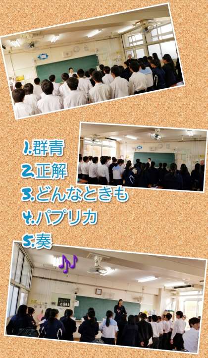 3年生の合唱練習です。廊下まで声が聞こえてきます。