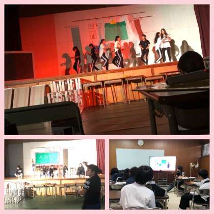 水曜日の学年発表会では、舞台発表を行います。展示部門の作品は、金曜日に行われる全体発表会の午後からご覧になっていただけますので、よろしくお願いします。