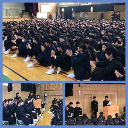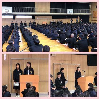 本日6時間目に、後期の生徒会役員を選出する選挙があり、それに先立って立会演説会が行われました。
