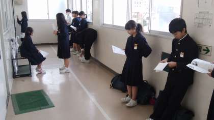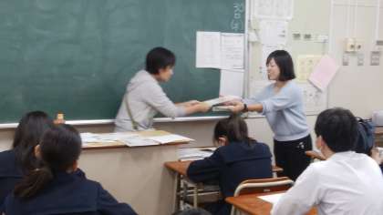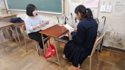 面接の練習をしています。