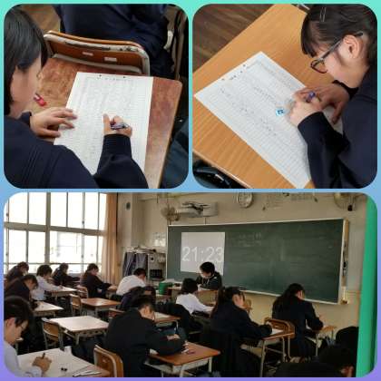 スラスラと左に書かれた日本語を右側の空白に英語に変換していく生徒もいれば、わかるところから埋めていく生徒や、数個書いて手が動かなくなる生徒もいたりと状況は様々です。
