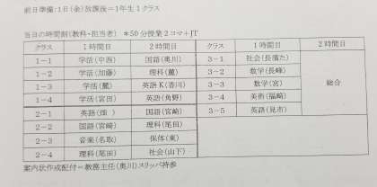 2限・・・1・2年生授業。3年生と3年生保護者の方は、体育館で進路説明会です。