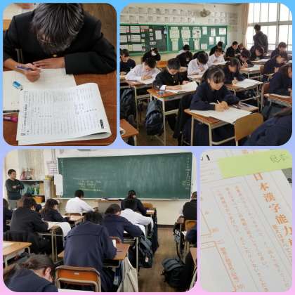 今日は、学校が主体となって計画運営し、生徒たちはこのテストに向けて取り組んできました。個々に目標級を設定し学習してきた力をこのテスト試します。