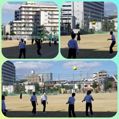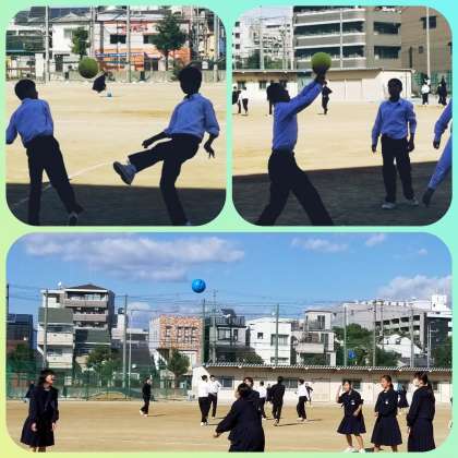三年生のいない昼休み、広々と1.2生がボール遊びを楽しんでいました。