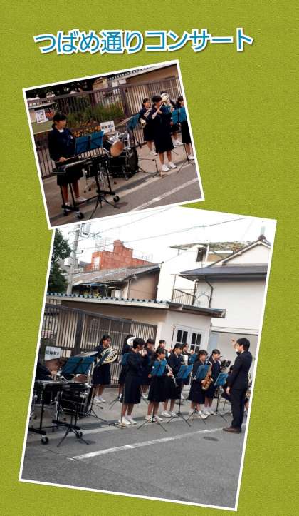 十三つばめ通り商店街において、十三中学校吹奏楽部が屋外コンサートを開催しました。