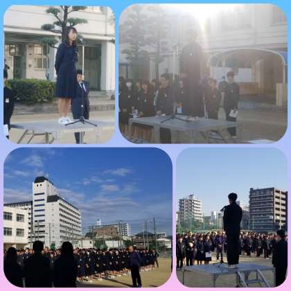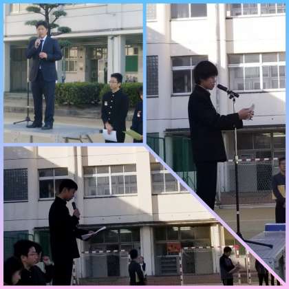 生徒会、前後期の会長から挨拶があり、全校生徒へのお礼と今後の決意が述べられました。
