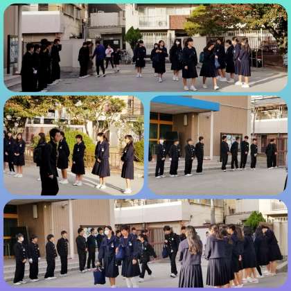 後期生活委員が勢ぞろいし、あいさつ活動を行っています。生活委員の丁寧な誠実なあいさつに照れくさそうに通り抜ける生徒たち。そんな生徒たちにも笑顔があり、あいさつの大切さが改めて感じました。