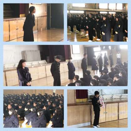 最初は、前期の間、学年の中心となり支えてくれた委員長たちへの感謝を伝えるセレモニー。大きな拍手で想いを届けます。しんどいことも多い中、本当によくクラスをまとめ、がんばってくれた立派なリーダーでした。後期も新たな委員長を中心に、それぞれが力を発揮して充実した生活を送れるようにしていきましょう。