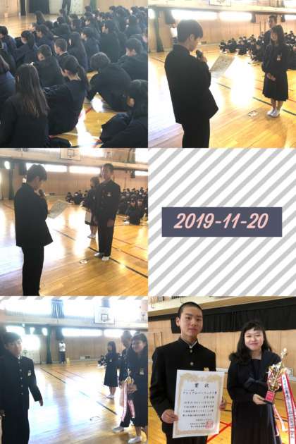 チャイム着席の表彰では、3クラスに賞状を授与することができました。特に4組は、今年度初めての4週間連続達成「プレミアム賞」です。大きな賞状とトロフィーを手に委員長は誇らしげでした。