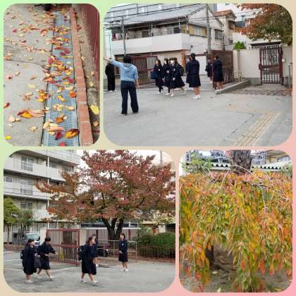 寒い朝の登校となりました。校門横には落ち葉が目立つようになってきました。