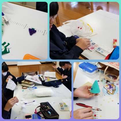 家庭科部は、クリスマスや年末年始等の作品(プレゼント)を作成中です。クッションやミニクリスマスツリーなど、楽しく活動していました。