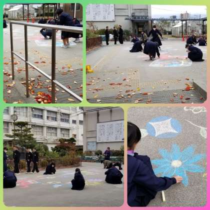 早朝より美術部が小学校6年生への歓迎メッセージを作成しています。