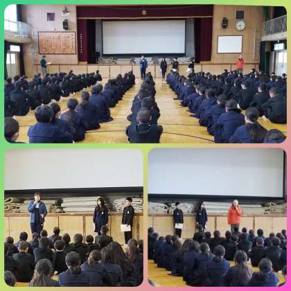教員講話では、学校生活においての自己中心的な言動や行動に対して、様々な例を挙げ、お話がありました。