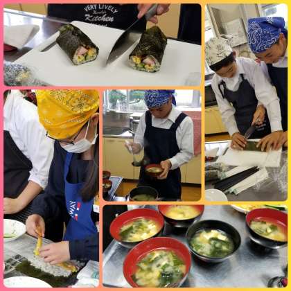 メニューは恵方巻きと味噌汁です。調理室に酢飯の良い香りが漂っていました。食欲をそそられます。