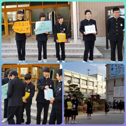 本日も元気に『あいさつ運動』と『赤い羽根共同募金』が活発に行われていました。