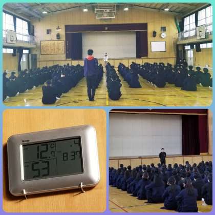 主任先生からは、終業式までの一週間の過ごし方、年明け三学期の過ぎ行く時の早さのなかで、どのように中学校生活を締めくくるのか、『しゅうかつ』と言う言葉を引用して指導されました。