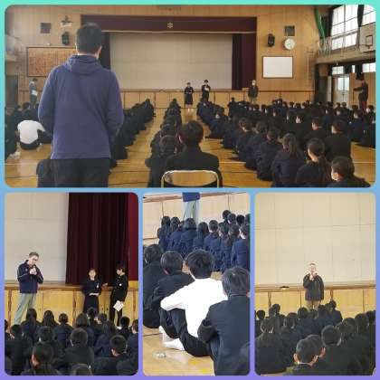 教員講話では、身体発育の顕著の時期にある中学生への注意喚起です。